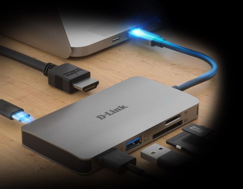 D-Link DUB-M610 6-in-1 USB-C Hub with HDMI, SD/microSD card reader and powerdelivery, DUB-M610,1* USB-C connector with USB cable 11.5 cm, 1* HDMI Port, 2* USB Type-APort (USB 3.0), 1* SD card slot, 1* microSD card slot, 1* USB-C powerdelivery.