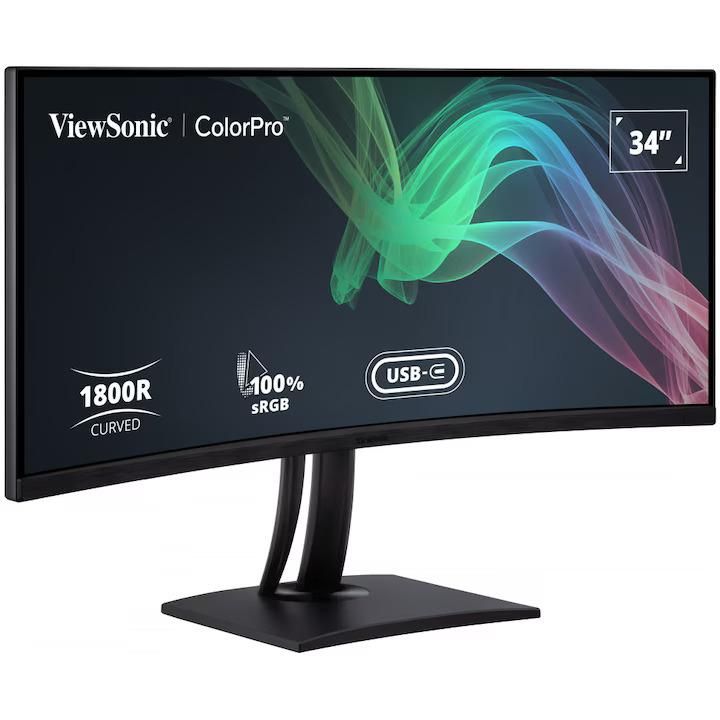 Monitor ViewSonic 34" VP3481A, Curvature: 1800R, Diagonal (inch): 34, Diagonal (cm): 86.4, Aspect ratio: 16:9, Panel: VA, Resolution: 3440x1440, Refresh Rate: 100Hz, Response time GtG: 5ms, Brightness (max): 310 cd/m², Contrast (static) : 3000:1, Contrast (dynamic): 20M:1, Viewing angle: 178° (H) / 178° (V), Color Gamut Type: DCI-P3, Color Gamut Coverage: 0.88, Colours: 16.7M, Speakers: 2x5W, VESA Wallmount: 100x100, Tilt: -6° ~ 21°, HAS: 130mm, Pivot: 120°, HDMI: x2, DisplayPort: x1, USB Hub: x2 USB A 3.2/x1 USB B 3.2, USB-C: x1 3.2 (Upstream/DP AltMode), USB-C Power Delivery: 90W, RJ-45: x1, AUX: x1 3.5mm Audio OUT