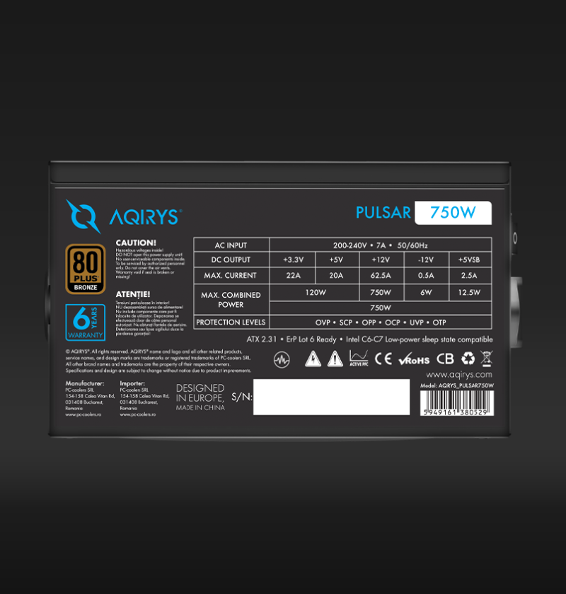 Sursa Aqirys Pulsar 750W 80+ White cert