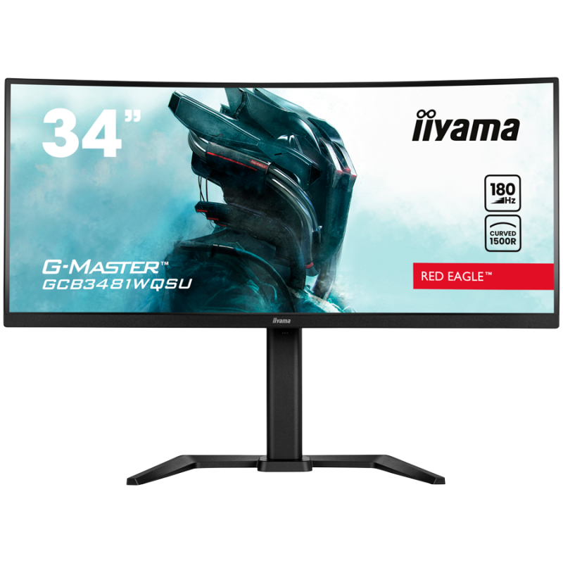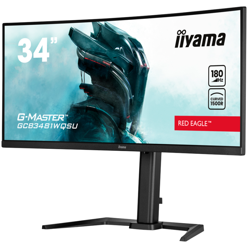 IIYAMA Monitor GCB3481WQSU-B1 Gaming 34" VA Curved 3440 x 1440 @180Hz 21:9 420 cd/m² 4000:1 0.4ms 2xHDMI USB Hub height, tilt