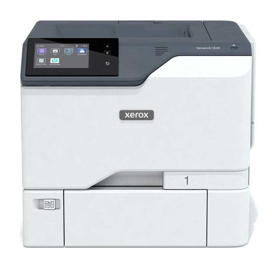Xerox VersaLink C620DN, imprimanta A4 color, 50ppm, 38ppm in duplex, rezolutie print 1200x1200dpi, PCL5 si 6/PS3/PDF, fpo 6.6s color/5.6s mono, procesor quad core 1,2GHz, memorie 2GB+32GB eMMC (opt HDD 500GB), alim 100+550 coli (max 2850p), iesire 300 coli, paper 60-218gsm, duty 150k/luna, recomandat 20000p/luna, tonere start 8000p mono, 7000p color, USB/Ethernet Gigabit/NFC (opt WiFi), port USB frontal, touch screen 5" .